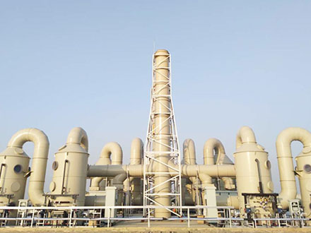 酸雾废气由风管引入酸雾净化塔,经过填料层,废气与氢氧化钠吸收液进行气液两相充分接触吸收中和反应,酸雾废气经过净化后,再经除雾板脱水除雾后由风机排入大气。吸收液在水喷淋装置底经水泵增压后在塔顶喷淋而下,最后回流至塔底循环使用。净化后的酸雾废气达到广东省地方排放标准的排放要求,低于国家排放标准。
